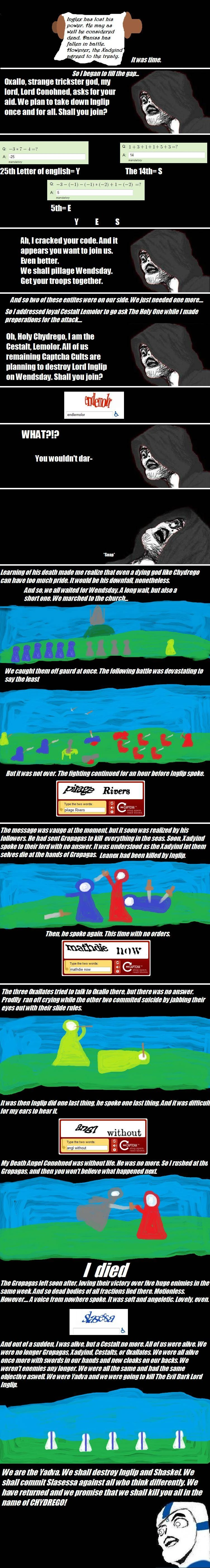 Inglip's enigmatic words mean only one thing: Conohned, the Dark Angel, was no more. He suffered the same fate as the other two Captcha Gods.